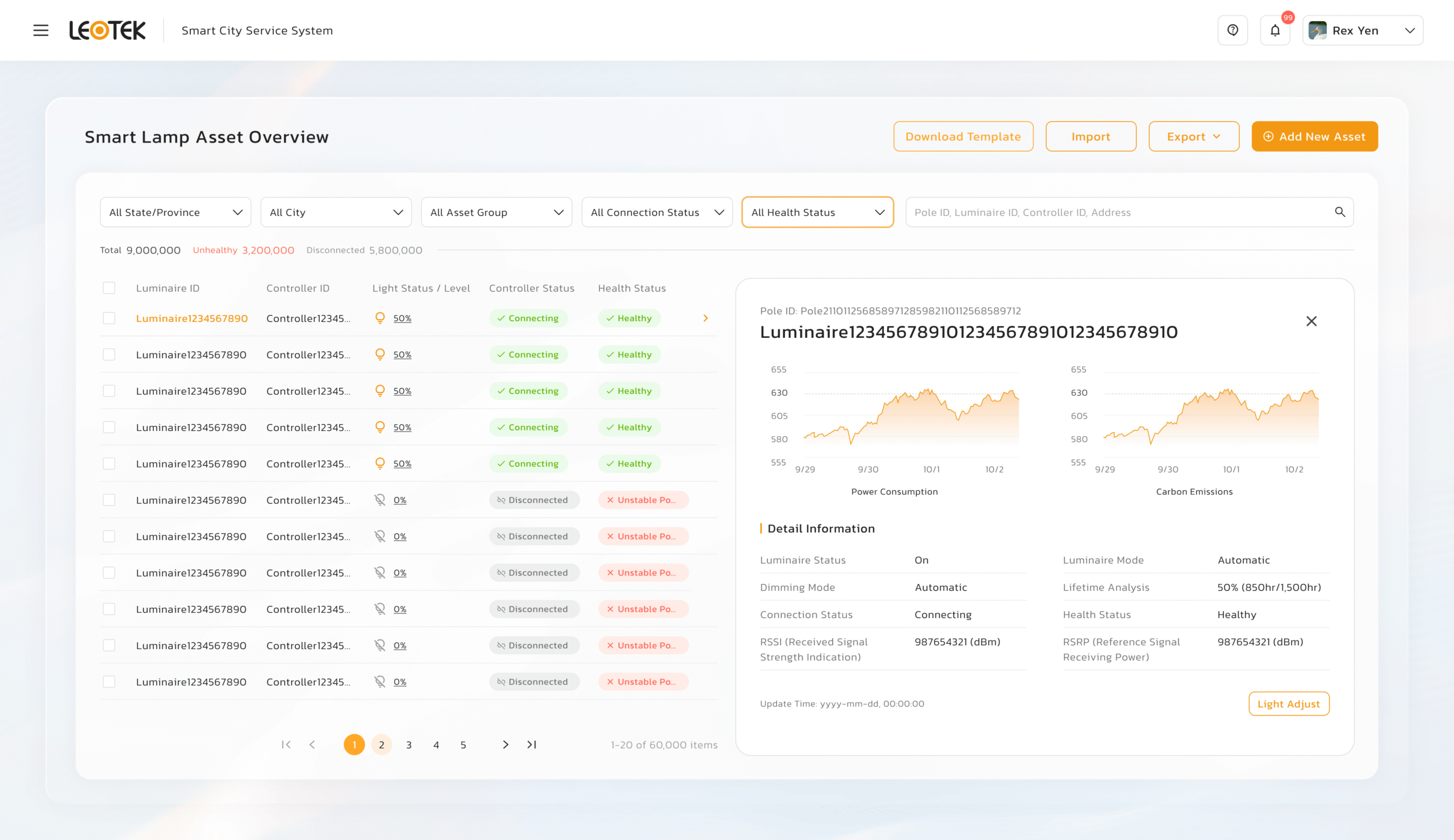 RenAI™ 是 LEOLink 智慧燈聯網系統的中央管理平台(CMS)。平台以 AI 為核心架構,支援預測性維護、自適應照明控制,以及依據環境與營運條件進行即時優化。